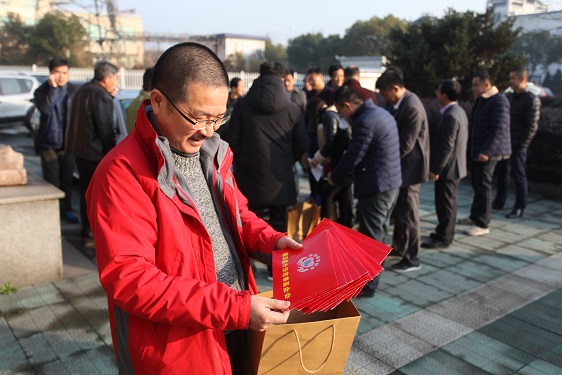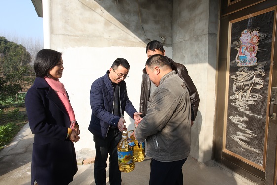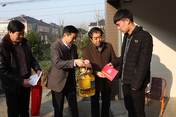 1月13日,hjc888黄金城官网集团党委副书记、hjc888黄金城官网慈善基金会理事长鲍希楠,集团公司副总裁王菊平,集团所属企业华源颜料董事长兼总经理竺增林等带队,分成14个组分赴钟管镇范围内各行政村,走村入户,集中走访慰问226户困难家庭,为困难家庭送去总共45.2万元的爱心红包和452桶食用油。