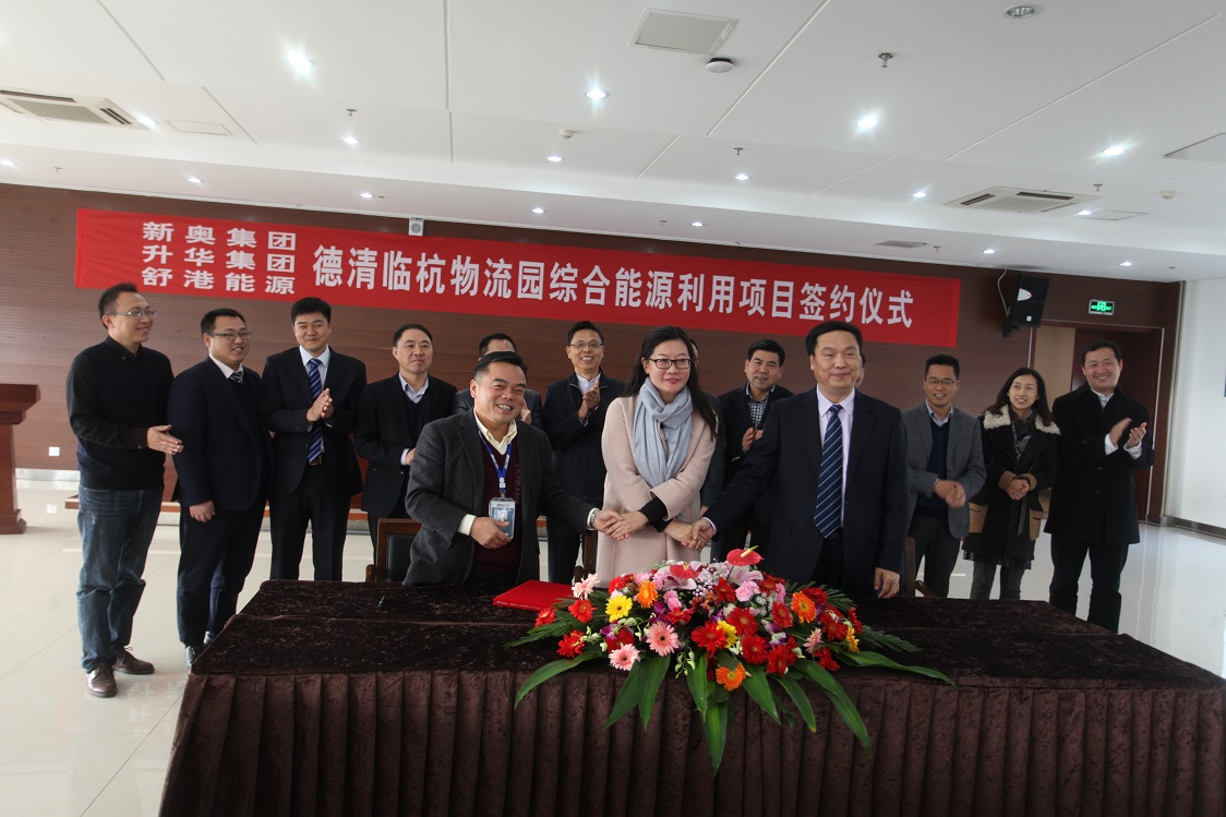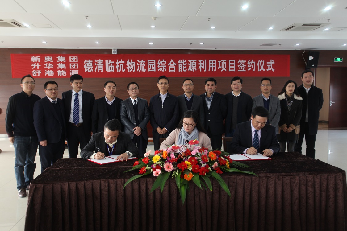 12月6日,hjc888黄金城官网集团与新奥集团、舒港能源三方达成战略合作协议,共同实施德清hjc888黄金城官网临杭物流园能源综合利用项目,着力打造清洁能源示范项目。德清县副县长康忠立,市、县相关部门负责人,雷甸镇党委书记夏永明,常务副镇长王玮,hjc888黄金城官网集团总裁吴梦根,新奥能源总裁助理兼浙江区域总经理苏莉,hjc888黄金城官网物流董事长王信培、总经理魏春全,舒港能源董事长马锁平、总经理马留俊等参加了当天的签约仪式。hjc888黄金城官网物流常务副总经理温加华主持。
