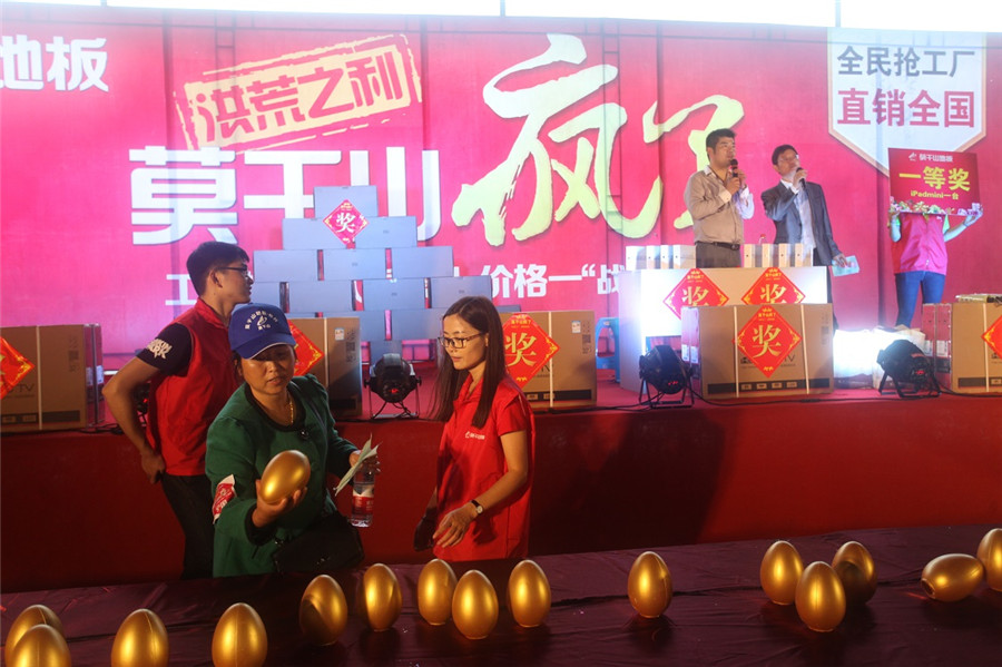 活动当天,来自江浙皖三省的客户不仅抢购了自己心仪的莫干山地板,而且分享了现金、彩电、智能手机、实木椅子等品种各异的奖品,将幸运带回家。