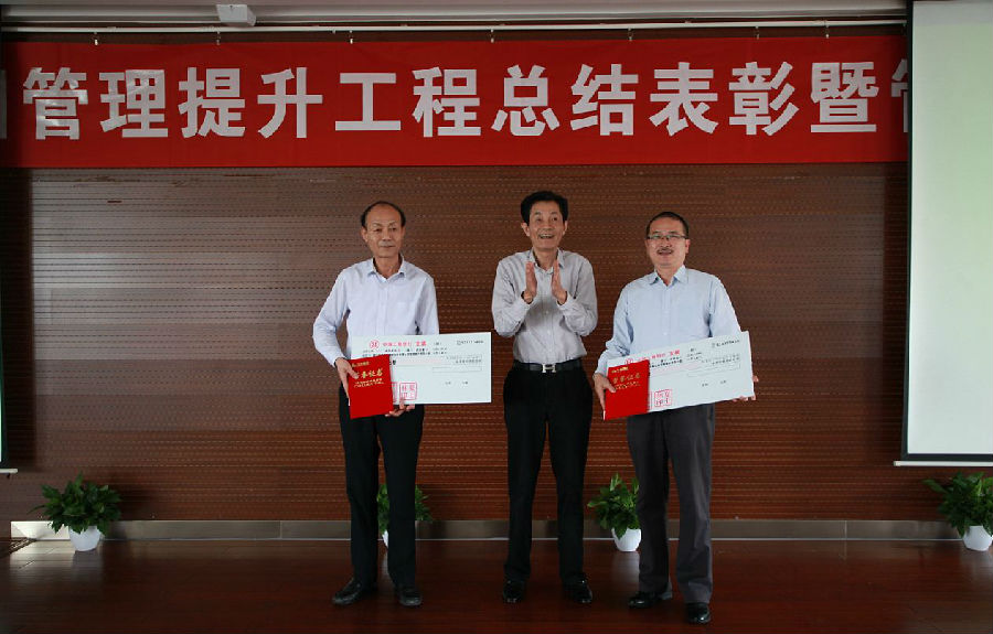 4月23日,hjc888黄金城官网集团管理提升工程总结表彰暨管理推进大会在集团所属企业hjc888黄金城官网物流四楼会议室召开,会议听取了“2379”管理提升工程实施两年来的工作情况汇报,部署了下阶段管理提升工作。集团公司领导夏士林、吴梦根、钱海平、王菊平、朱根法、王锋、鲍希楠等参加了当天的会议。集团公司常务副总裁钱海平主持会议。会议表彰奖励了两个管理提升工作优秀团队和26项管理提升工程第三阶段优秀成果项目。