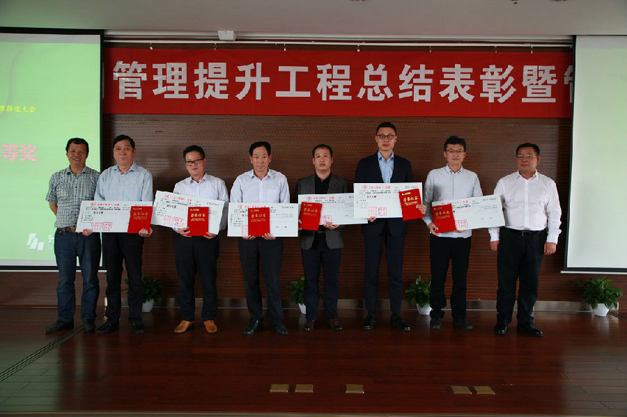 会上,云峰新材、华源颜料两个管理提升工作领导小组受到集团公司表彰奖励,《电磁铁代替人工清桶——降本提质、强化安全》等26个成果项目分获管理提升第三段管理提升优秀成果一、二、三等奖和鼓励奖。集团公司领导夏士林、吴梦根、王菊平、朱根法、王锋、鲍希楠等分别为优秀团队、优秀成果奖获奖项目组颁奖。